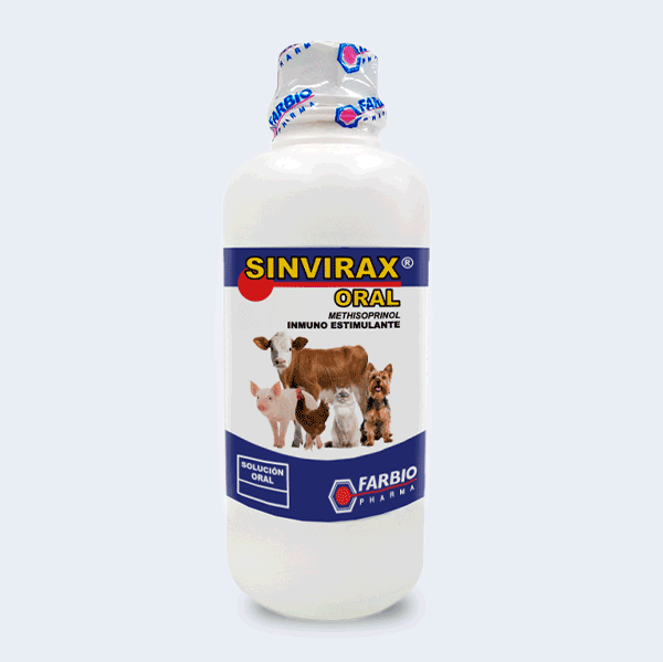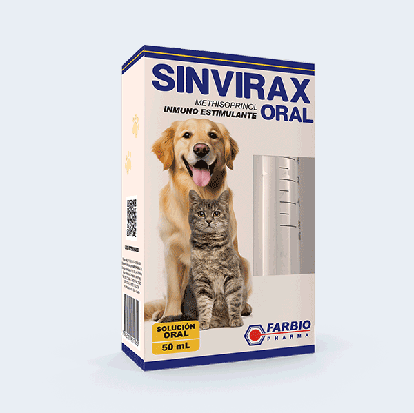 SINVIRAX ORAL está indicado como inmunoestimulante. Estimula la producción y aumento de la función de células T, natural killer (NK), incrementa la actividad de las células B (incrementando por tanto la producción de inmunoglobulinas) e intensifica la actividad fagocitaria. Además, impide la replicación viral suprimiendo la síntesis de ARN. Permite una pronta desaparición de signos clínicos y recuperación en cuadros infecciosos. Puede utilizarse en hembras gestantes y lactantes.